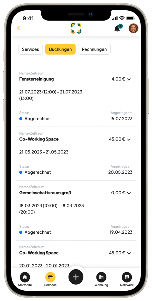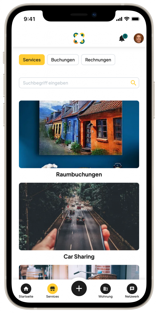 Ob Paketdienst, Reinigungsservice oder Mobilitätsangebote – Verschiedenste Dienstleistungen können bequem über die App gebucht werden und erleichtern den Mieter*innen ihren Alltag.