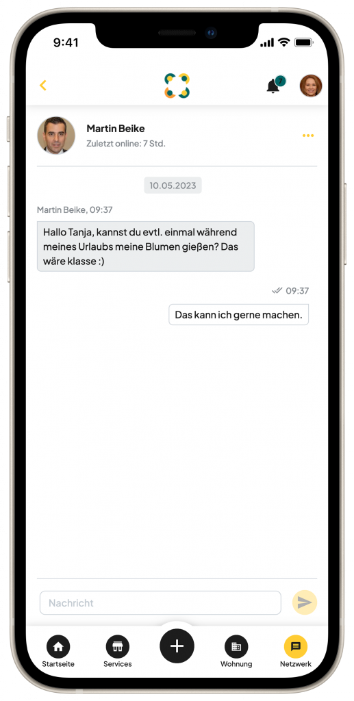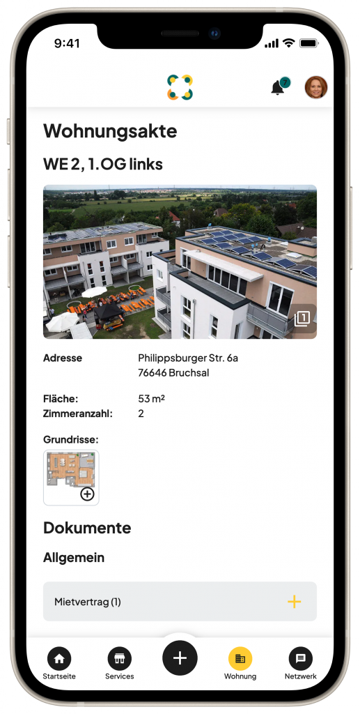 Wohnungsrelevante Dokumente und Daten sind jederzeit einsehbar. Die Kommunikation mit der Hausverwaltung erfolgt direkt, schnell und unkompliziert.